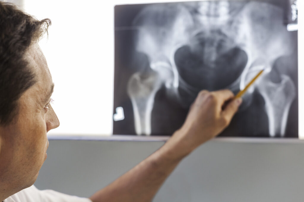 Radiografia continuă să fie un instrument indispensabil în evaluarea durerii de șold. Aceasta permite detectarea fracturilor, a artrozei, a displaziei și analizează aliniamentul osos. Un avantaj important este posibilitatea efectuării radiografiei în ortostatism („în picioare”), oferind informații despre încărcarea articulației în condiții fiziologice — un aspect pe care RMN-ul nu îl poate surprinde întotdeauna cu pacientul în pozitie culcată.