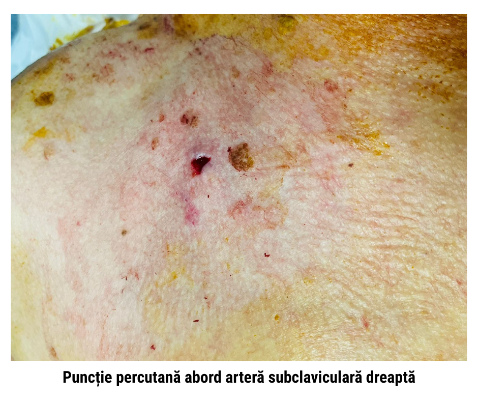 În acest caz, anatomia vasculară periferică nu permitea acces femural sigur.